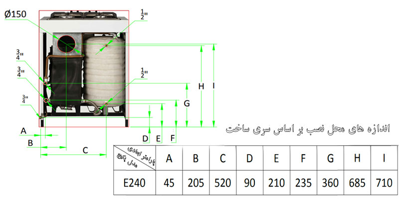 - آب گرم مصرفی توسط منبع کوئل دار 60 لیتری تامین می شود.